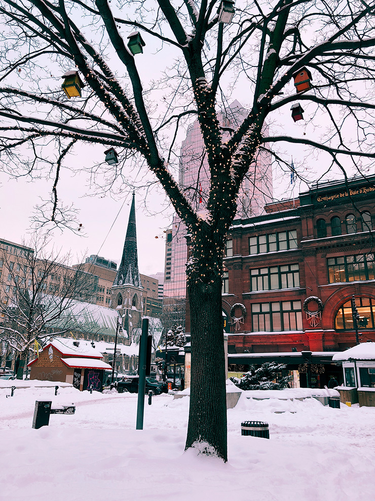 Vous avez été nombreux à me demander si il était possible de profiter de Montréal en hiver, si on pouvait se ballader, visiter. Alors, bien couvert il est possible de faire beaucoup de choses. Bien sûr il est compliqué de se promener des heures mais pas de soucis pour se ballader dans les rues, faire les magasins et puis il y a toujours l’excuse de s’arrêter se réchauffer dans un restaurant, un café…