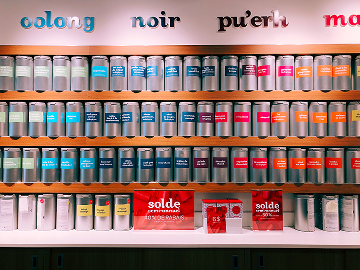 Il existe plusieurs boutiques Davidstea à Montréal et j’ai complètement craqué. Des magasins qui ressemblent à des boutiques Kusmi Tea. J’ai ramené du thé bien sûr et je me régale. Des saveurs inattendues et délicieuses.