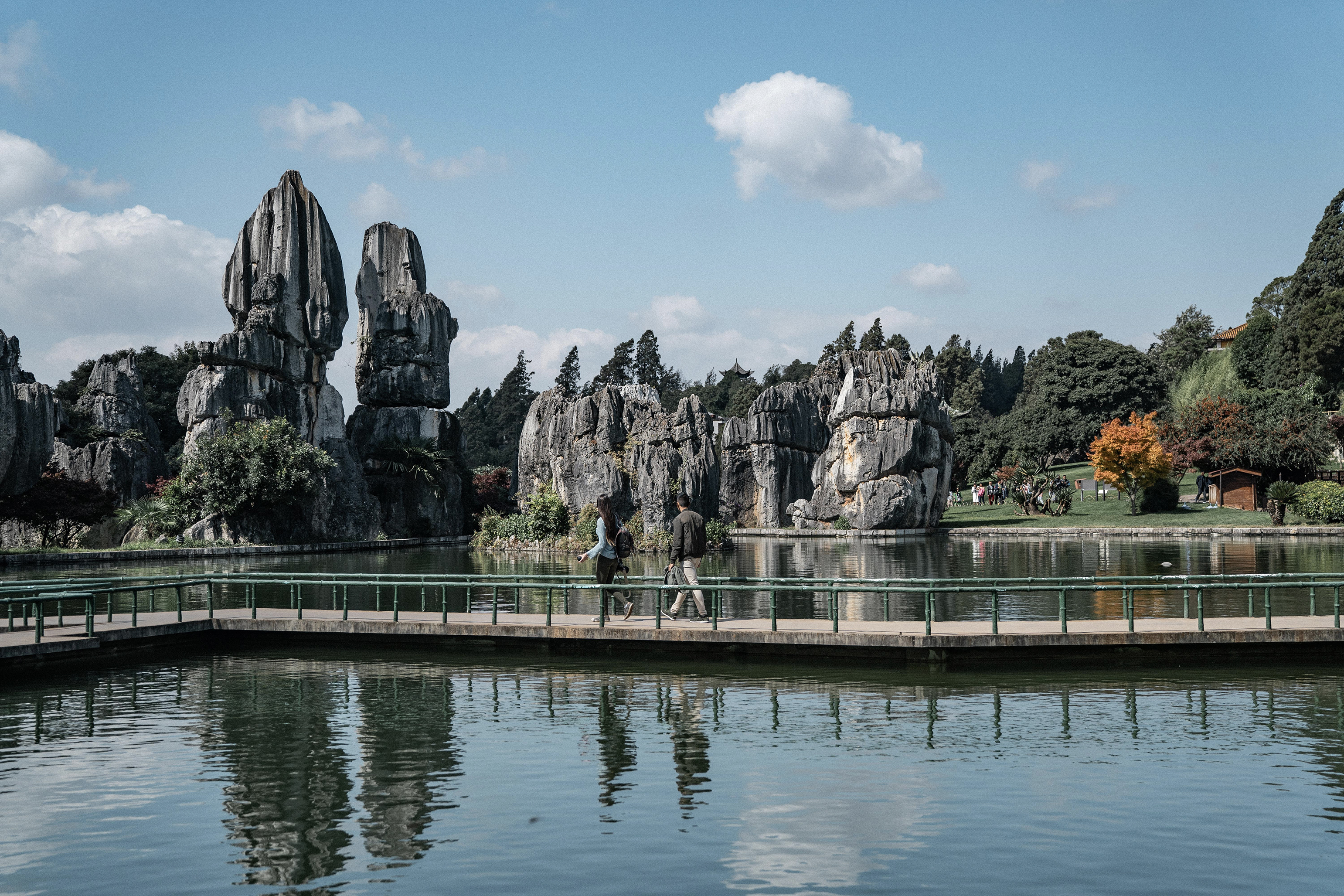 Après un dernier déjeuner à Shangri La direction Lijiang. Avant de rejoindre l’hôtel nous avons visité le parc de l’étang du dragon noir. Une balade dans des jardins autour d’un étang et ses ponts. Nous avons attendu le coucher du soleil, il n’y avait plus personne dans le jardin et les couleurs étaient superbes.