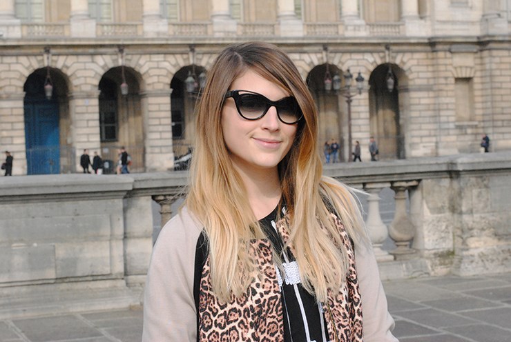 Perfecto en cuir Maison Martin Margiela pour H&M, top Zara, slim Cimarron, boots Jeffrey Campbell via Sarenza et lunettes de soleil Sonia Rykiel.