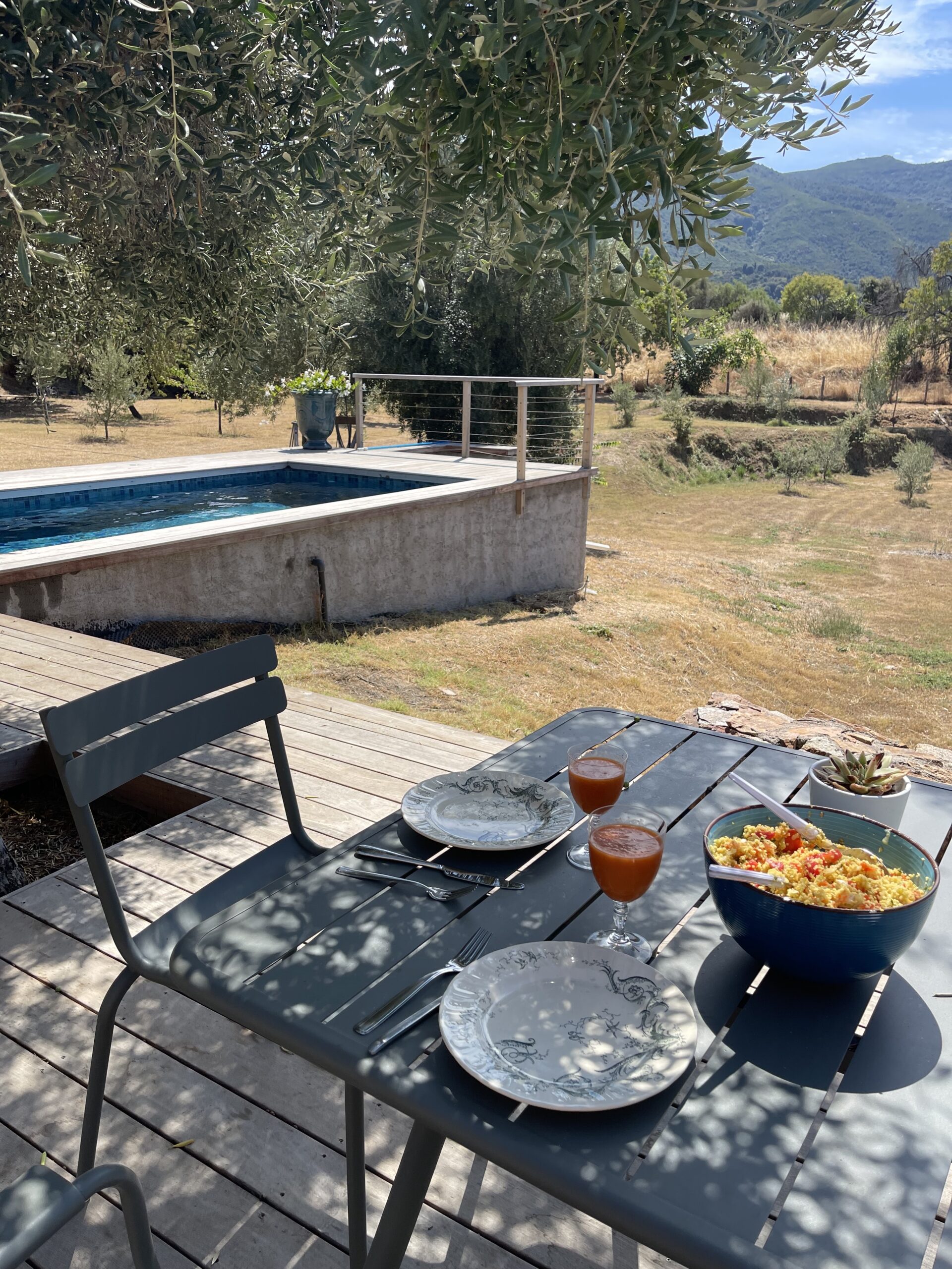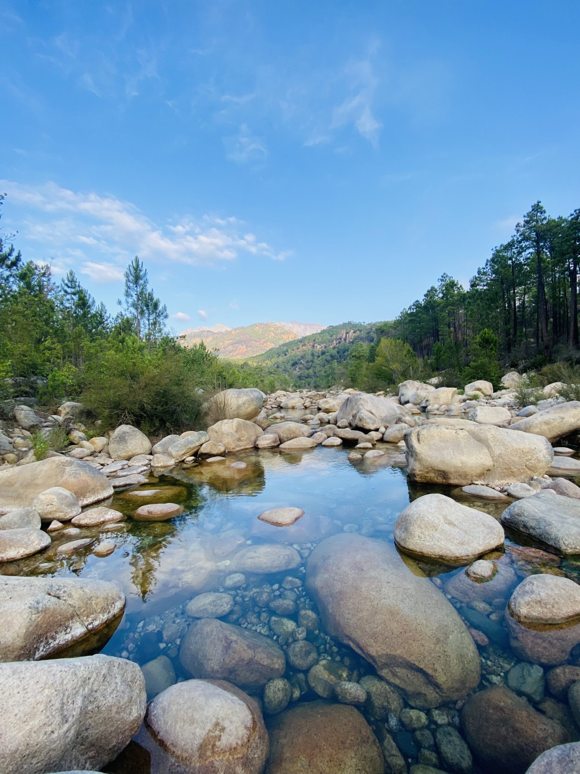 Réveil sur la terrasse de notre petit chalet à U Livanti. J’ai enfilé mes baskets et j’ai couru de bon matin au bord de l’eau.