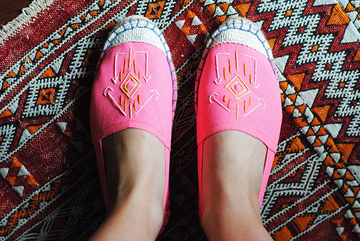 Pour la broderie je me suis inspirée de motifs navajo. Cela dit tout est possible, étoiles, fleurs, lettres…
