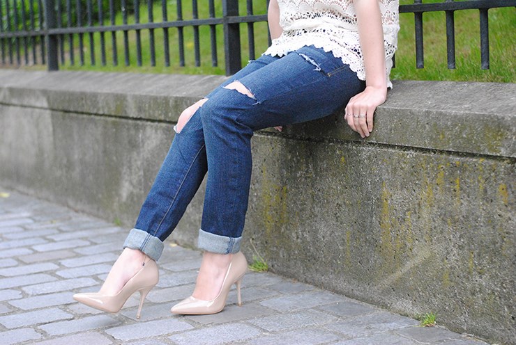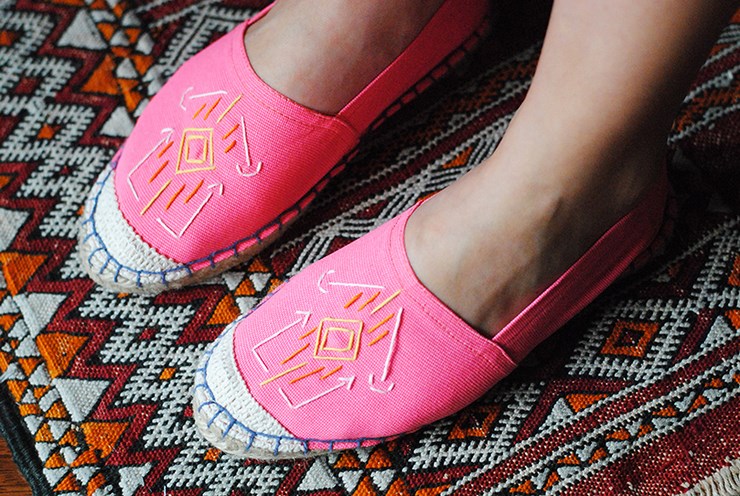 Penser symétrie, les deux espadrilles doivent se ressembler autant que possible.
