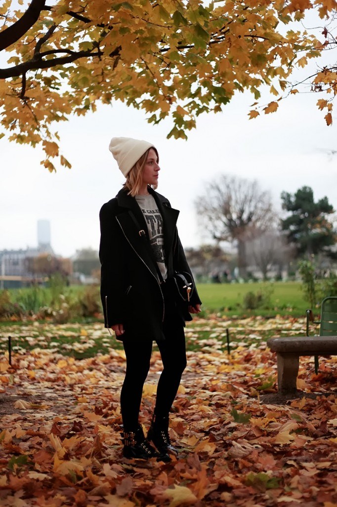 L’hiver j’ai souvent envie de tenues « pyjamas ». Le froid me rend fainéante. Ici : un sweat long, une paire épaisse de collants, des boots confortables et un bonnet. Vous souvenez-vous de ce manteau ? C’est un héritage de ma grand-mère. J’ai préféré le raccourcir et c’est ma Mamie qui s’en ai chargé. Cette veste a le chic pour relever le niveau d’un look trop simple.