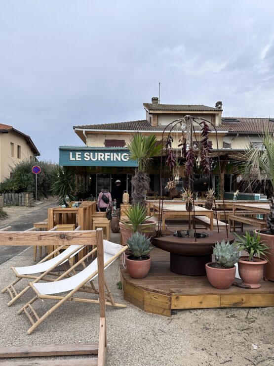 Le surfing since 1988 est niché derrière la dune de la plage des estagnots. Belle terrasse ou intérieur cosy et surtout une carte gourmande. Le matin de 9h à 11h : bowl, viennoiseries, toast…
