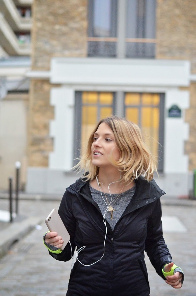 PAUSE : je suis freelance, je travaille de chez moi et certains jours je ne mets pas un pied dehors. Courir est avant tout un moyen de m’aérer l’esprit et de penser à autre chose. Je pratique peu d’activités ou de loisirs qui me font m’évader. Quand je cours je ne peux plus toucher à mon téléphone (répondre à un texto en courant ce n’est pas évident…) et c’est un bonheur. Trop rares sont les moments où je mets l’iPhone de côté (à part au cinéma et quand je fais la vaisselle^^) et j’apprends à les apprécier et à les multiplier.