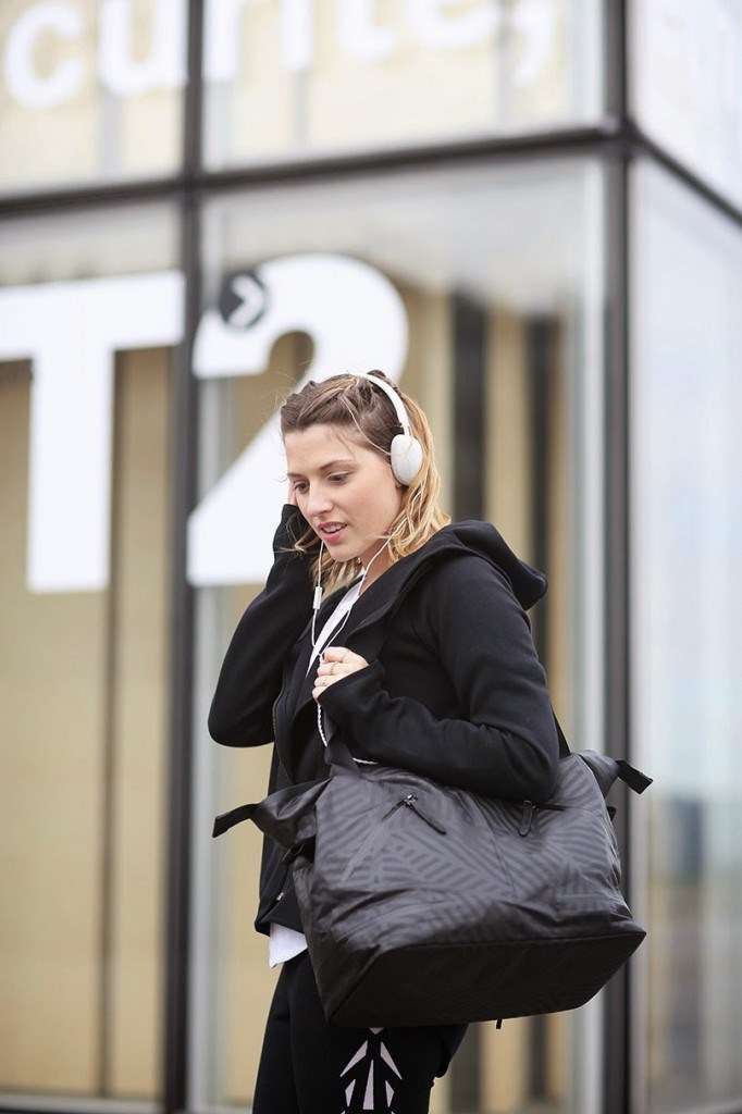 Mes derniers indispensables : une couche de baume à lèvres avant de partir (mes lèvres se dessèchent vite pendant la course), mon téléphone pour écouter de la musique et utiliser mon application Nike Plus et une gourde remplie d’eau.
