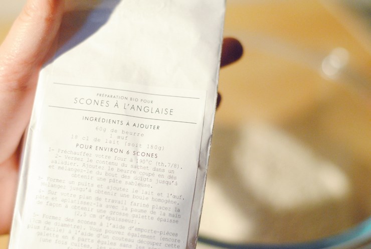 Tout est expliqué sur le sachet et il suffit juste de rajouter les produits frais. Pour les scones : du lait, un œuf et du beurre.