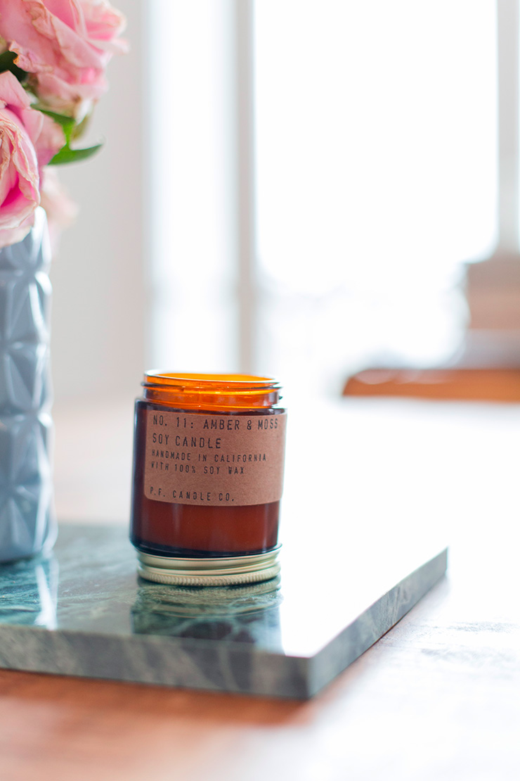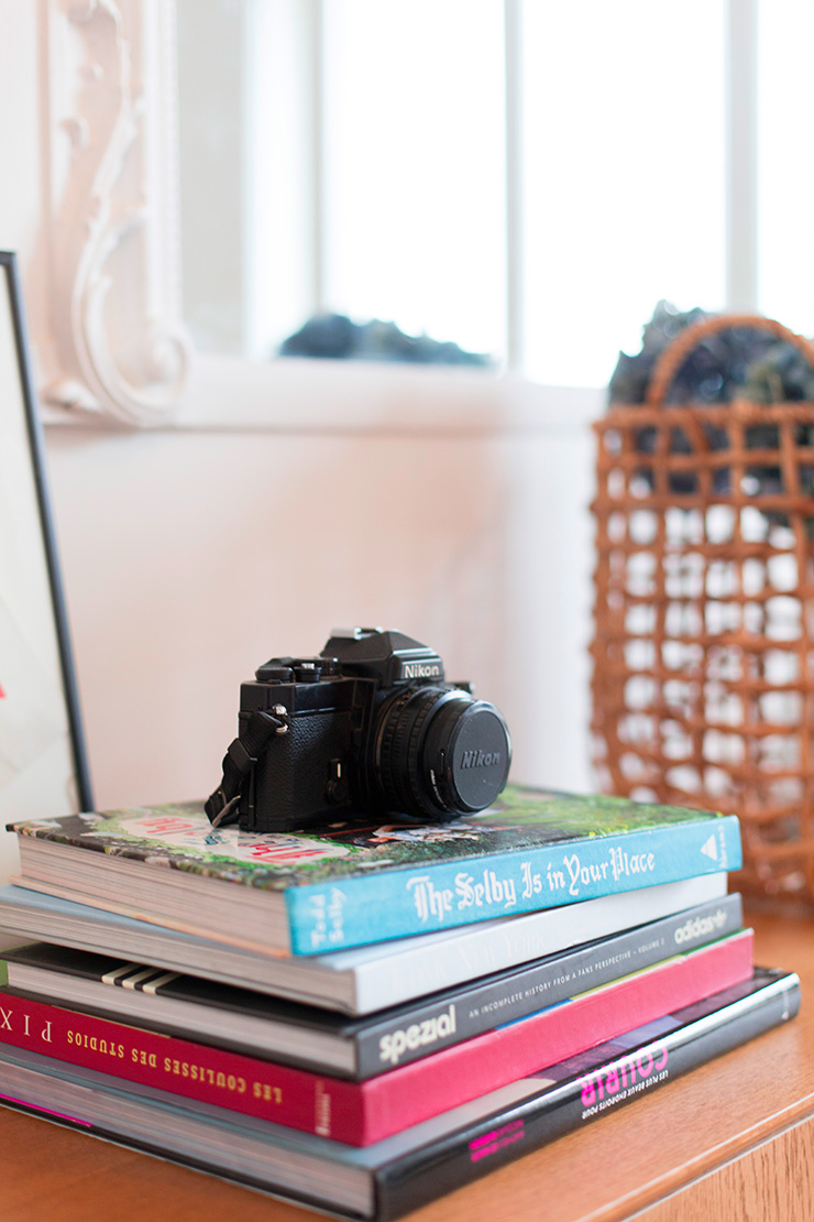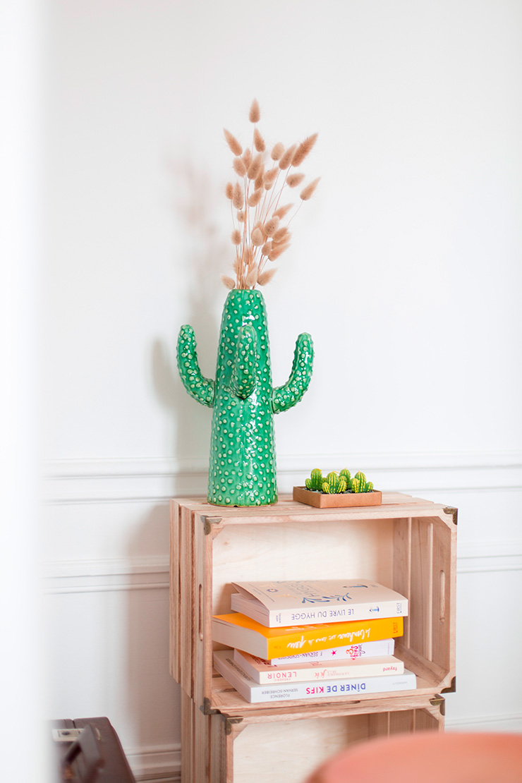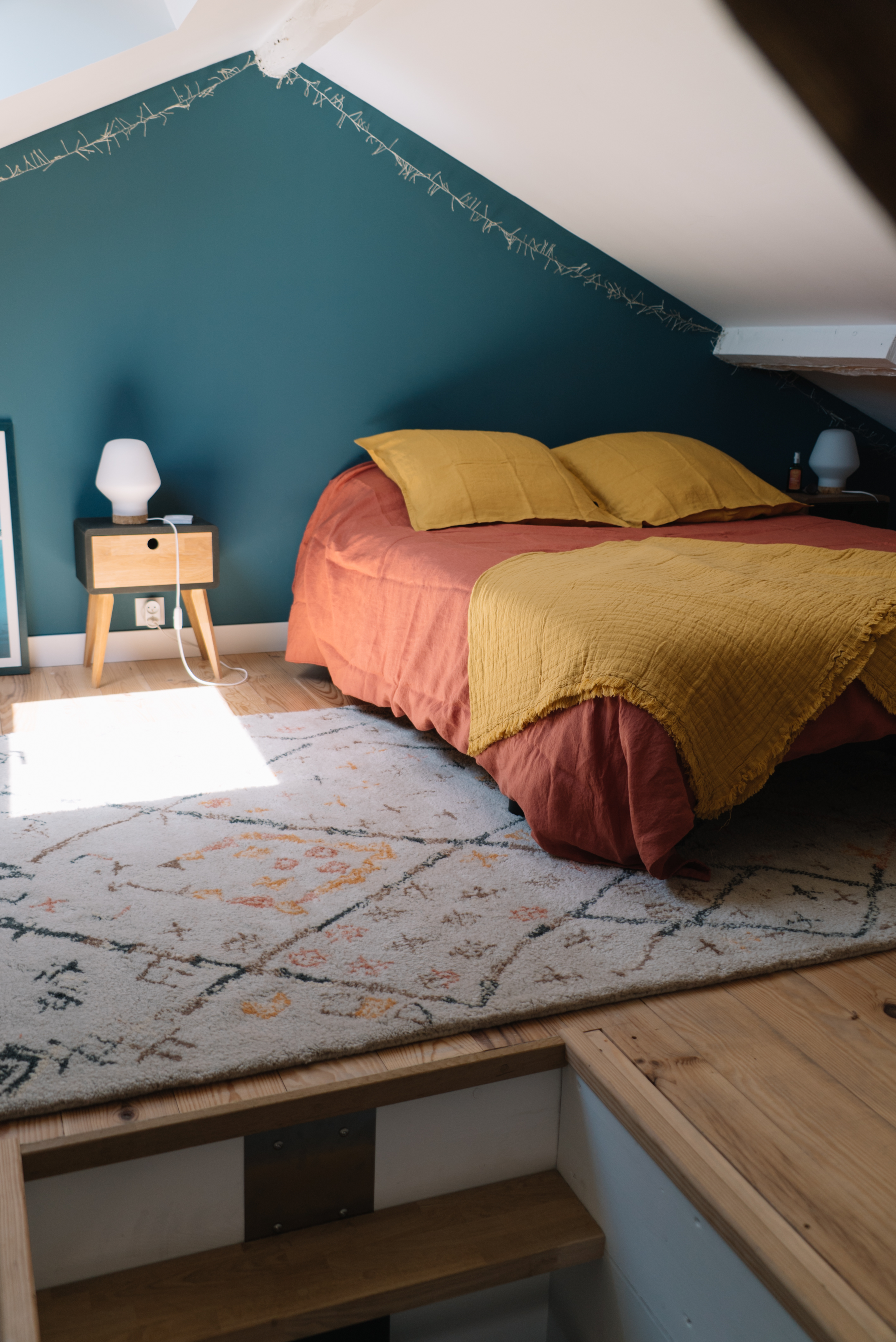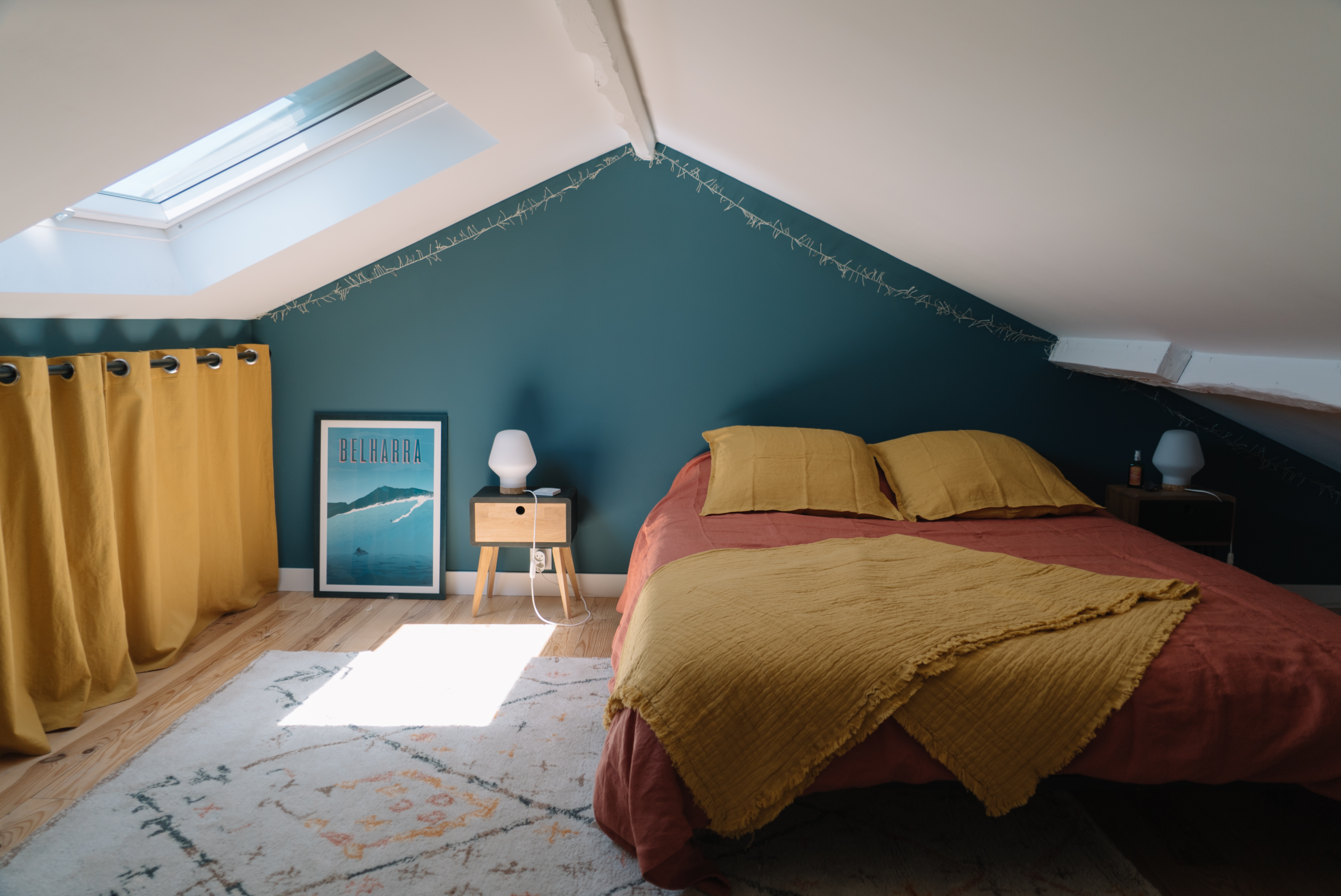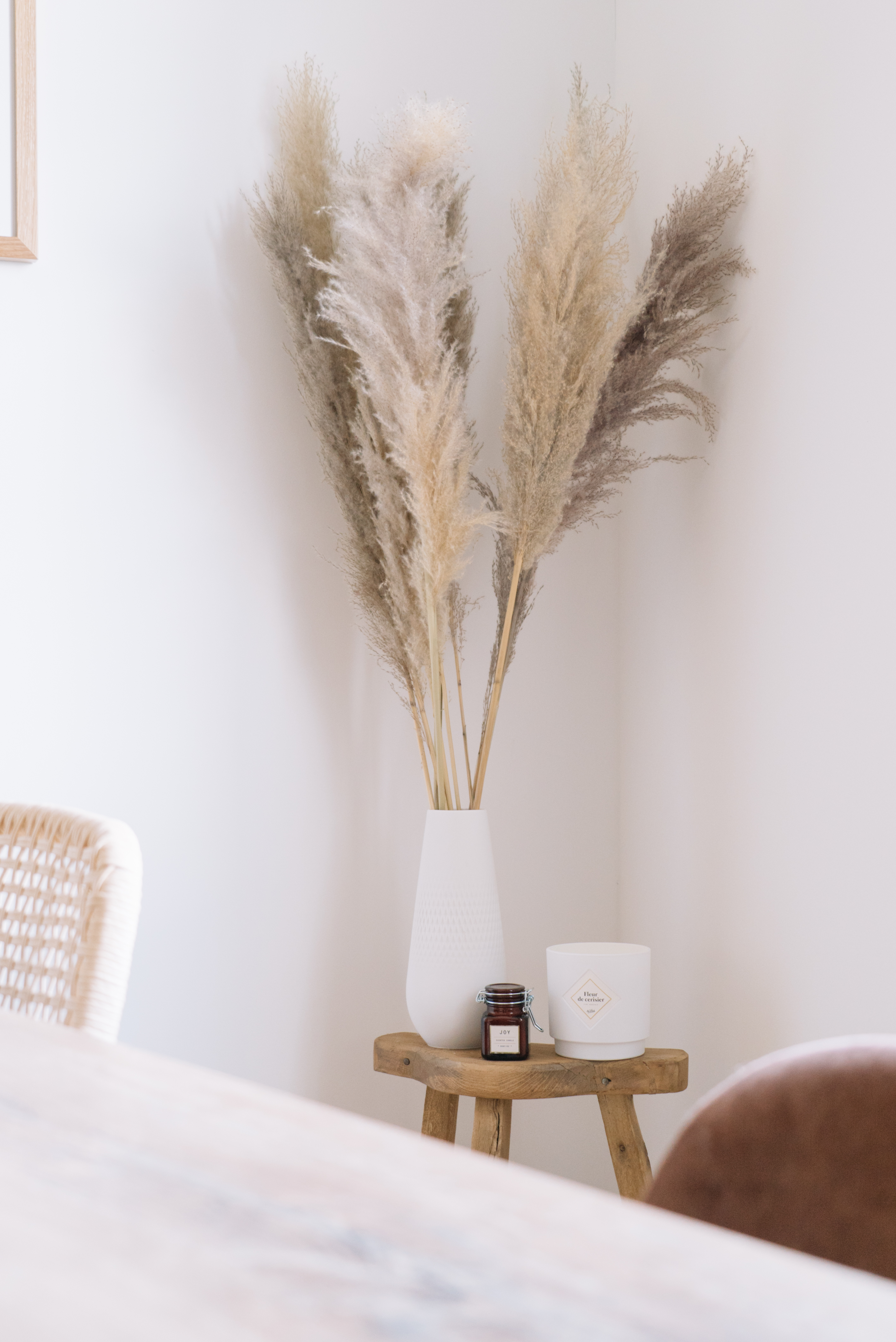 Je ne souhaitais pas changer les meubles de cet appartement joliment meublé, exceptées les chaises. Il s’agit donc de petites décorations, avec la contrainte des murs bleus. Et moi qui avait envie de terra cota et de rose, je suis conquise !
