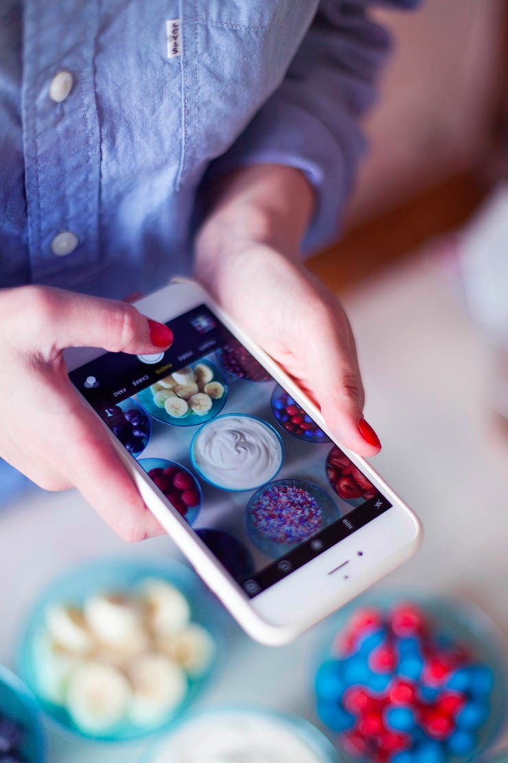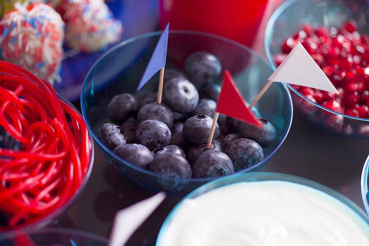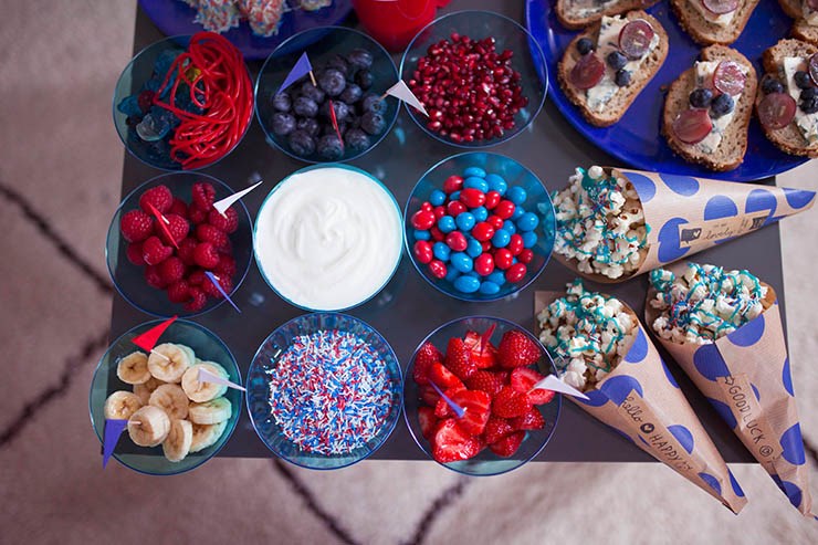 Recette 4 : fromage blanc, framboises, fraises, myrtilles, grenade, banane, M&M’s, Stroumpfs…