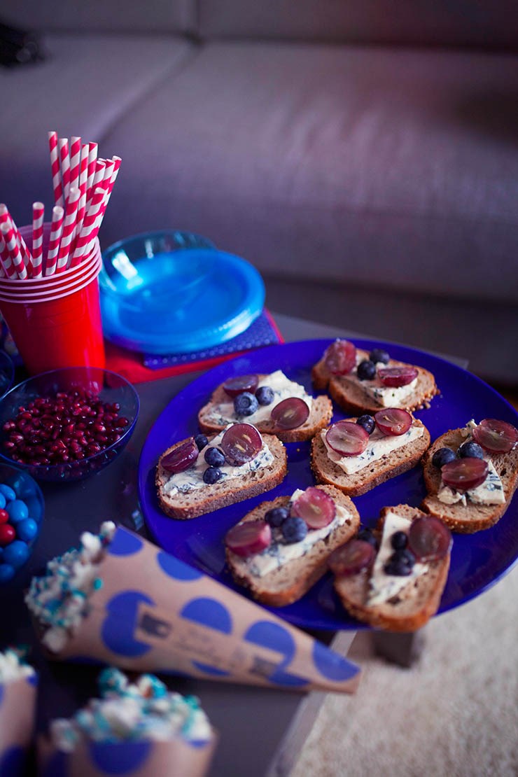 Recette 1 : tranche de pain, bleu, myrtilles et raisin.