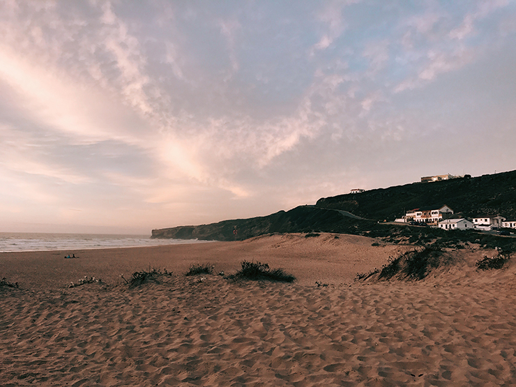 Fin de journée les pieds dans le sable au Luna bar. Un restaurant sur la Praia da Vagueira. Bières locales, petits plats maison. Nous étions heureux de retrouver l’océan et nous avons dégusté un super burger vegan et une soupe maison.