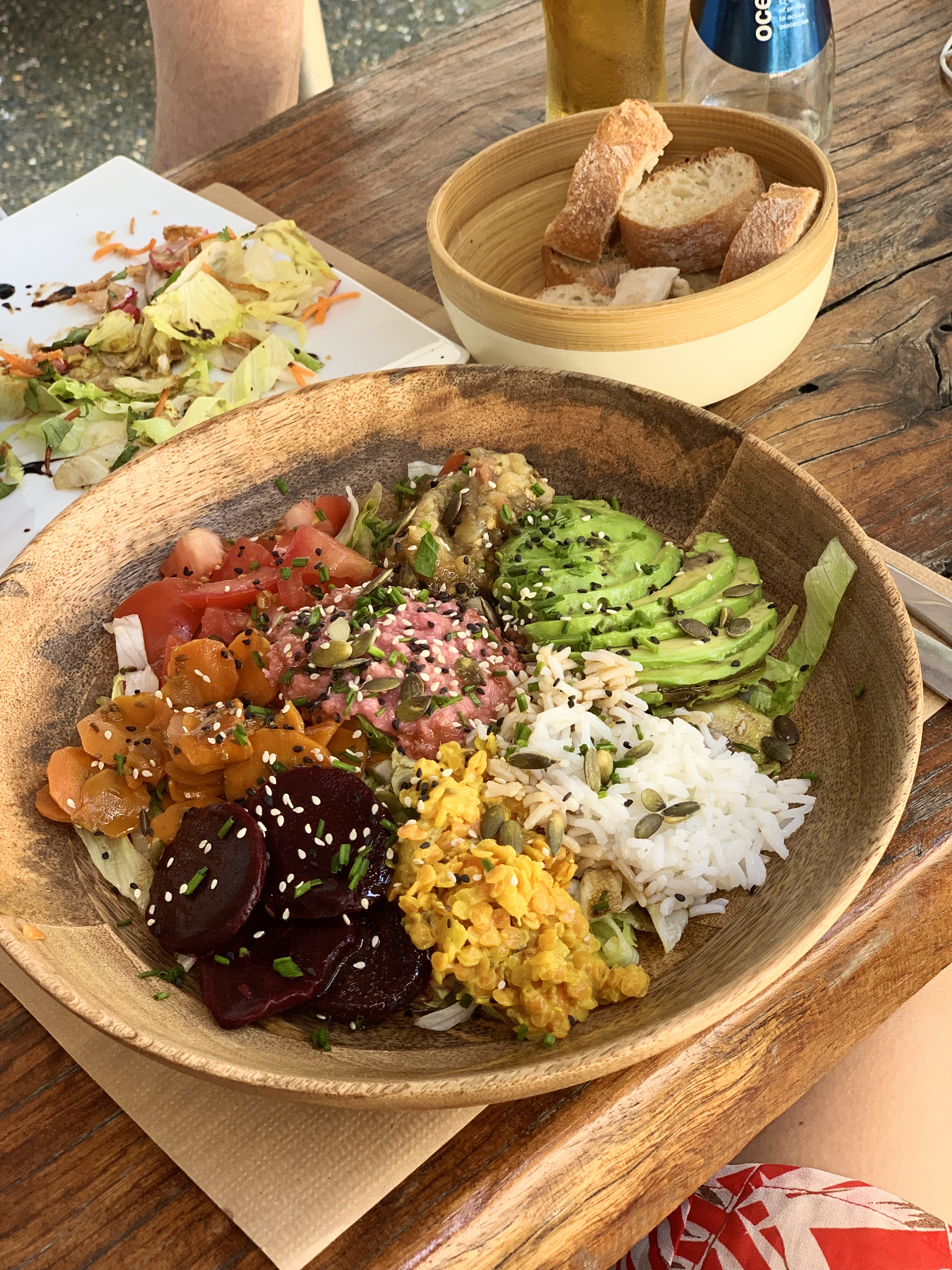 Pas de service à table, un grand bowl vous est servi et à vous de composer. Un repas très sain !