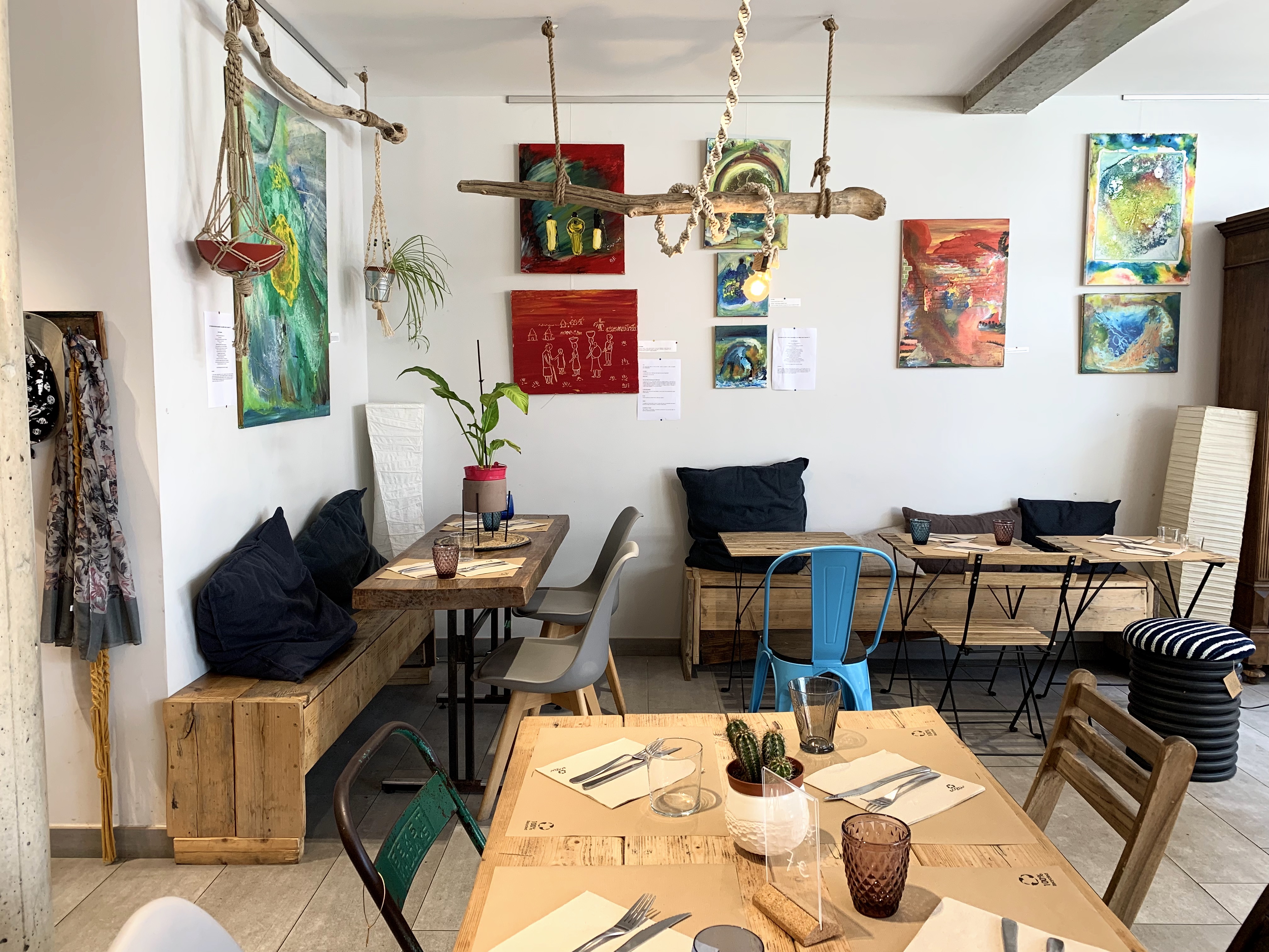 Café végétarien à Bastille. Les adorables propriétaires préparent tout maison ! Assiettes généreuses et accueil chaleureux.