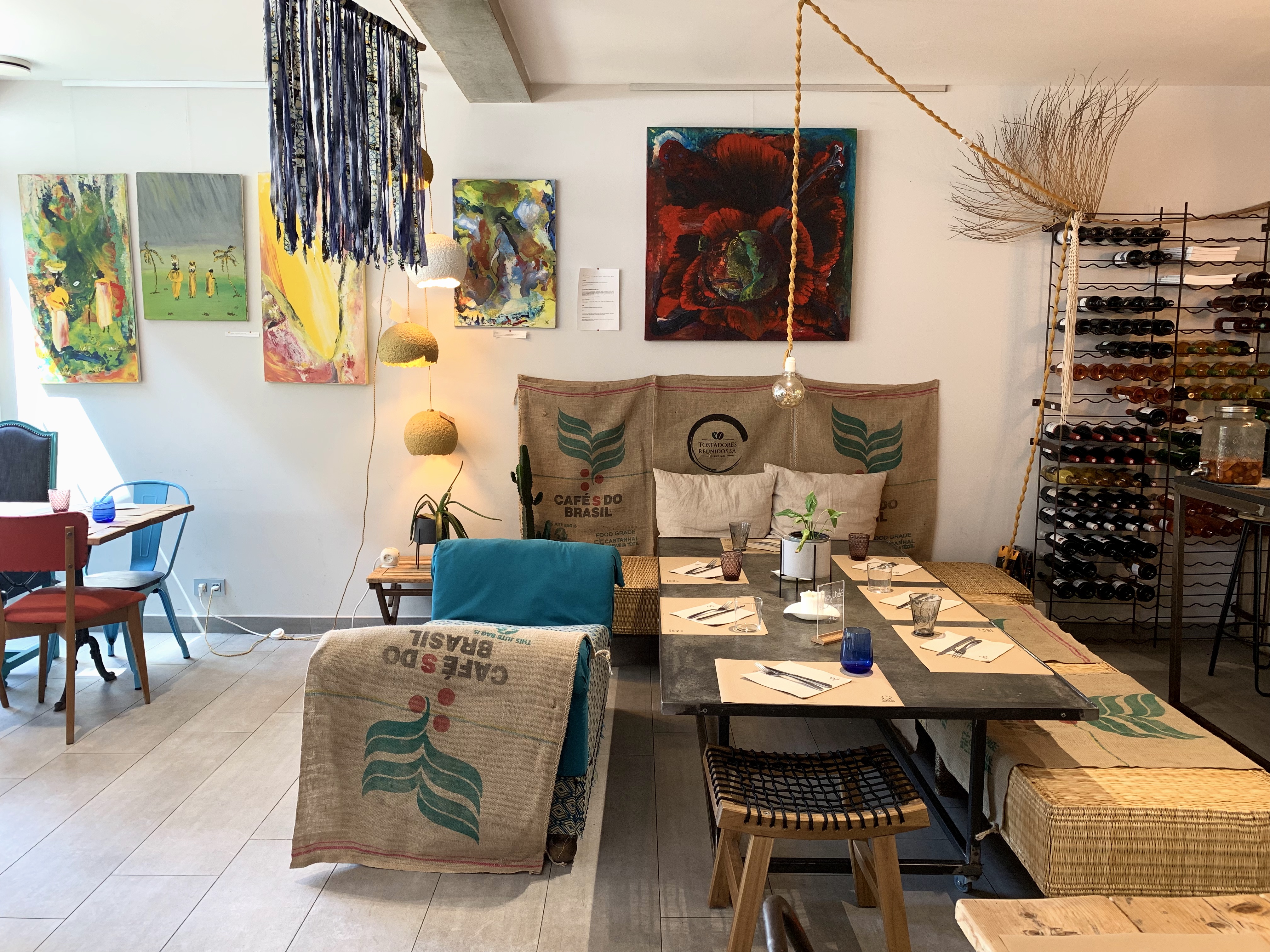 Un lieu idéal pour se poser travailler. L’ambiance est calme… petit dej, boisson chaude, déjeuner… de bonnes recettes maison (même le lait d’amande).