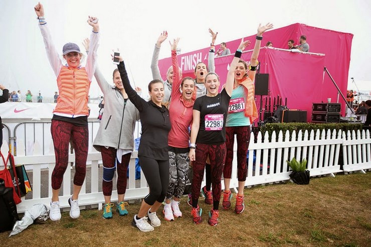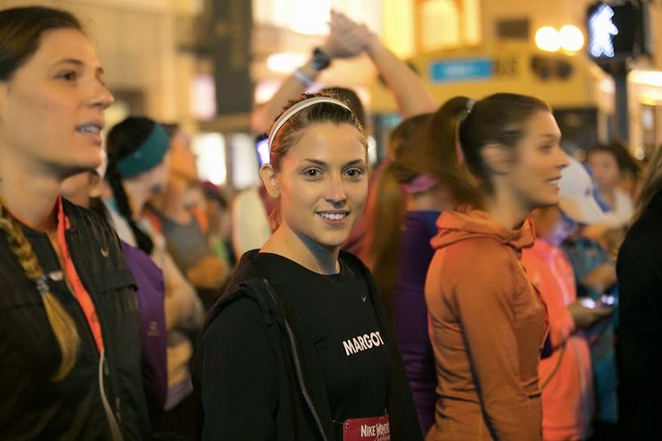 Ma tenue. Je portais un top noir comme tout le monde que Nike avait floqué à mon nom avec un super message dans le dos (qui m’a valu pleins de compliments pendant la course) « If you never question your crazy little voice join us ». J’ai démarré mon run avec un sweat que j’ai donné à une association après 15 minutes. J’ai trouvé l’initiative géniale.
