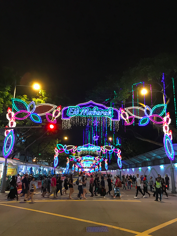 Le Geylang Serai market est très connu pour passer une soirée animée, dîner dehors et même faire un peu de shopping. Pendant le ramadan, le marché et sa rue principale sont encore plus remplis et décorés. Nous avons commandé des plats malais (le nasi goreng m’avait tellement manqué) et en dessert un putu piring (coco, sucre de palmier, farine de riz). J’étais trop heureuse de retrouver des saveurs découvertes en Malaisie.