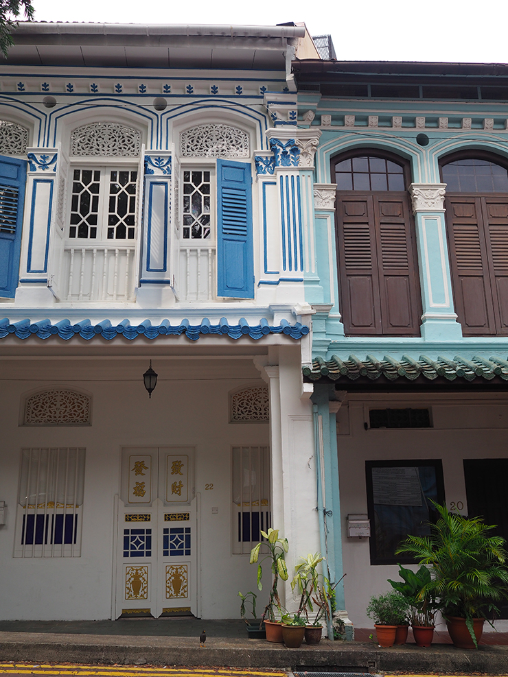Direction Emerald hill, une charmante avenue pour une ballade à travers des maisons anciennes. Ce que j’avais préféré en Malaisie, ces maisons et leurs pas de porte décorés.