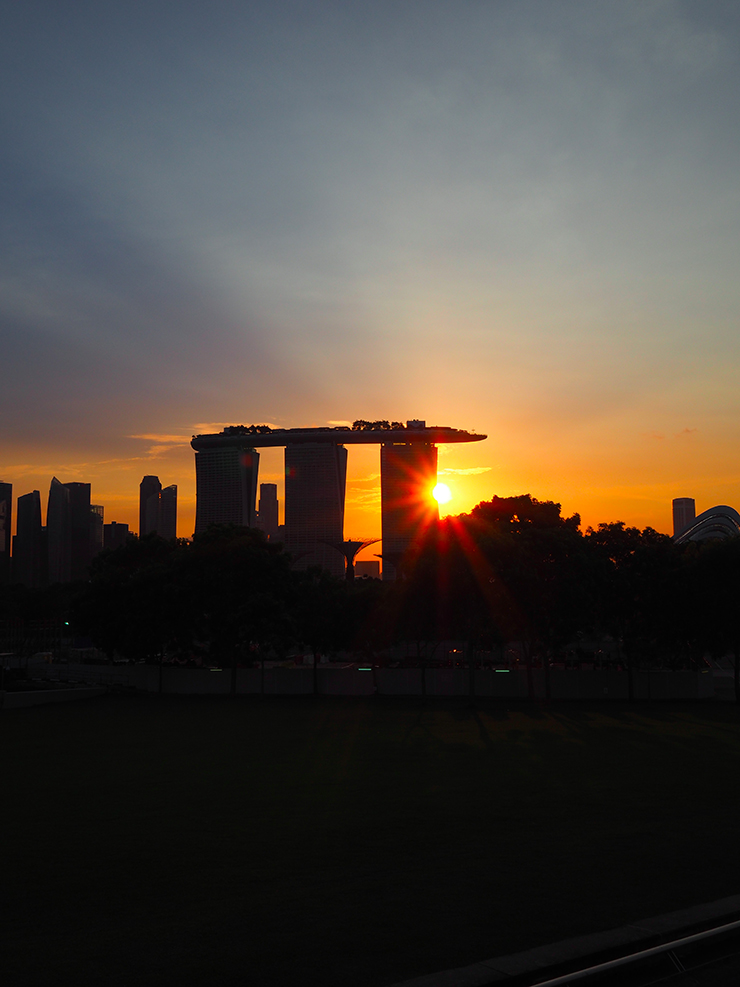 Marina Bay Sand est sûrement l’incontournable numéro 1 de la ville. 1 hôtel, 2561 chambres divisées en 3 immeubles (avec également un des casinos le plus grand au monde et un centre commercial) et en toute simplicité un bateau niché au sommet.
