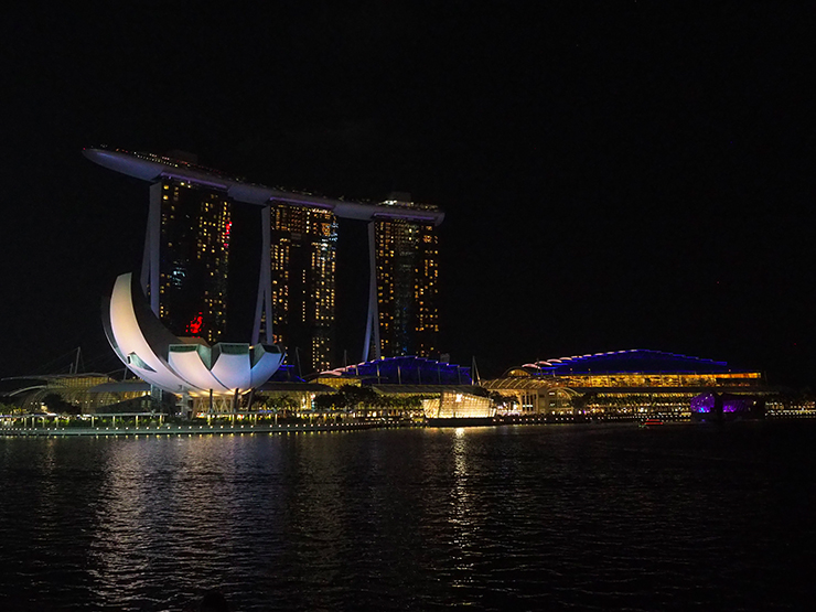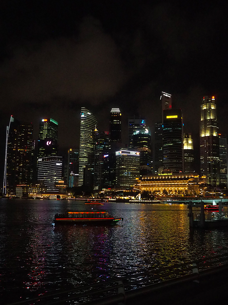 Nous avons fait un tour en « bateau mouche », en bumboat, pour rejoindre Marina bay sands. 20 minutes de bateau durant lesquelles nous avons longé d’autres quais.