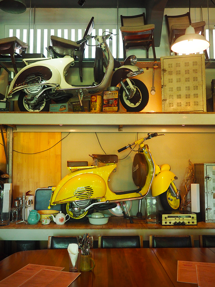 Nous avions réservé à the coastal settlement. Un restaurant qui avait retenu notre attention grâce à sa décoration. Une collection de Vespas, des meubles, des objets chinés… super atmosphère. À la carte : des plats asiatiques mais aussi des salades, un fish and chips, des avocado toasts… c’était bon!