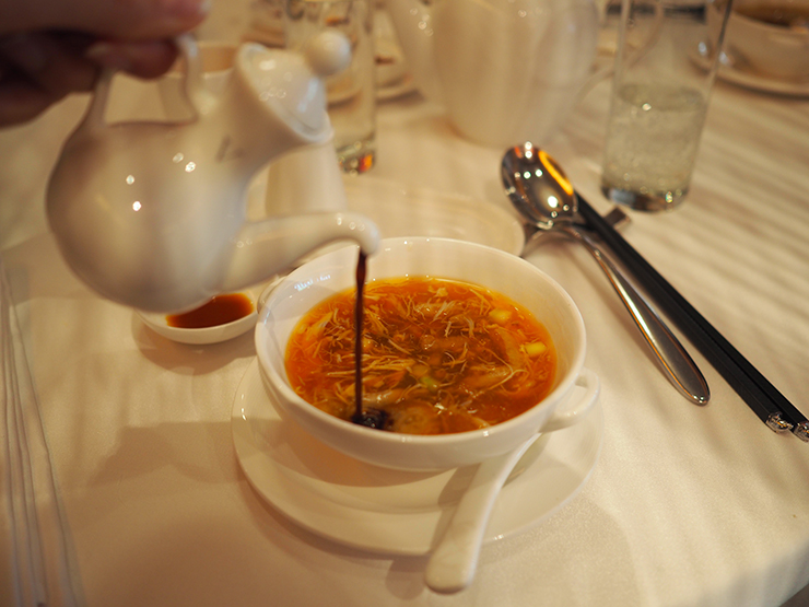 Nous avons déjeuné sur place au restaurant chinois YAN . Et avons testé le menu découverte (38$) : dim sum, soupe, poisson et enfin nouilles. En dessert j’ai découvert le chilled mango cream with pomelo. Une soupe de mange froide, un délice.