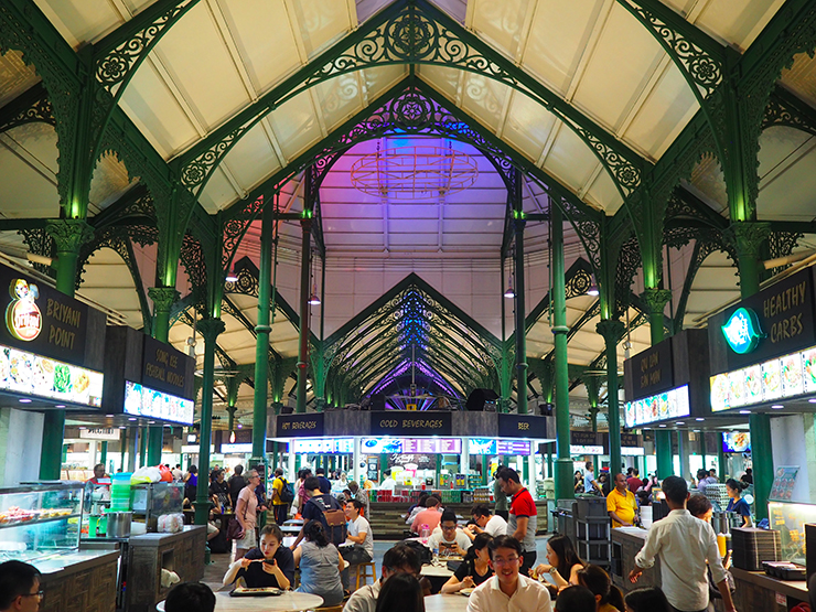 Dernier diner à Lau pa sat, un hawker (construit par les britanniques) qui propose de nombreux styles de cuisines asiatiques (et autres) : indiens, malais, chinois, japonais… des jus de fruits, des desserts… et des versions végétariennes. Avant de quitter Singapour nous avons ainsi dégusté plusieurs plats, toujours à partager 😉