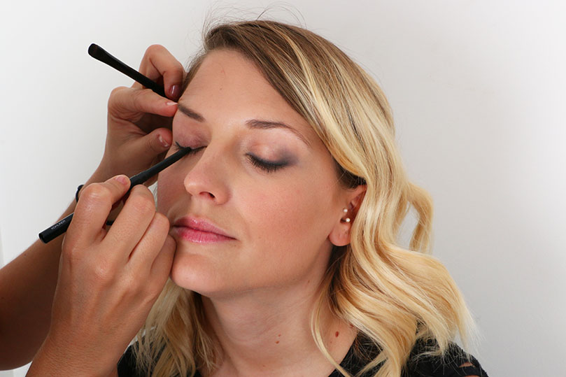 A l’aide du Kohliner, on crayonne la paupière mobile par hachures et on étire la matière au doigt ou à l’aide d’un pinceau.