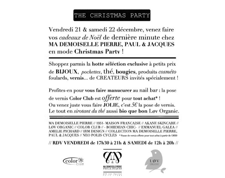 Vendredi & samedi, Ma Demoiselle Pierre organise une Christmas party dans sa boutique : lancement des nouveaux modèles de Ma Demoiselle Pierre en avant 1ère,